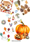 - Farbenfrohe Herbstmotive mit BlĂ€ttern, Eicheln und KĂŒrbissen