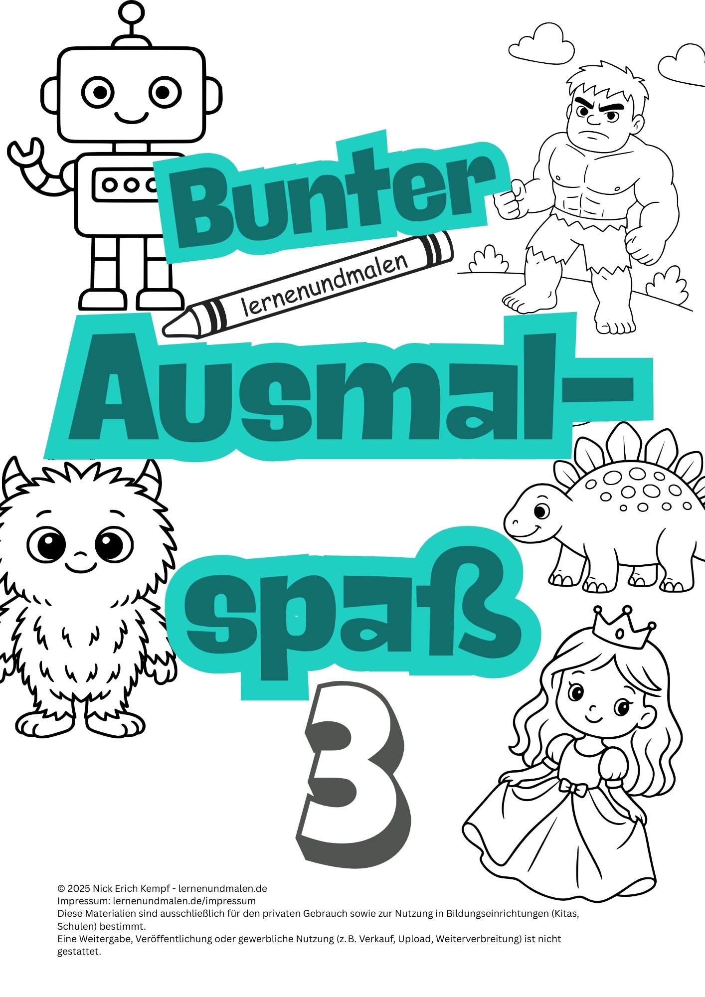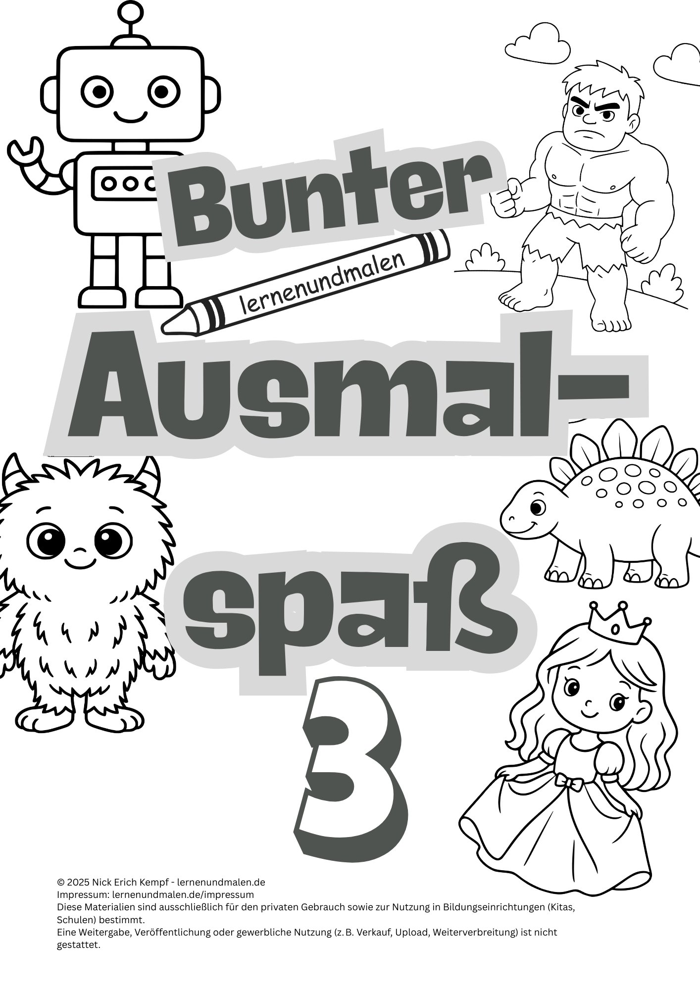 Bunter Ausmalspaß mit Roboter, Muskelmann, Monster, Dino und Prinzessin